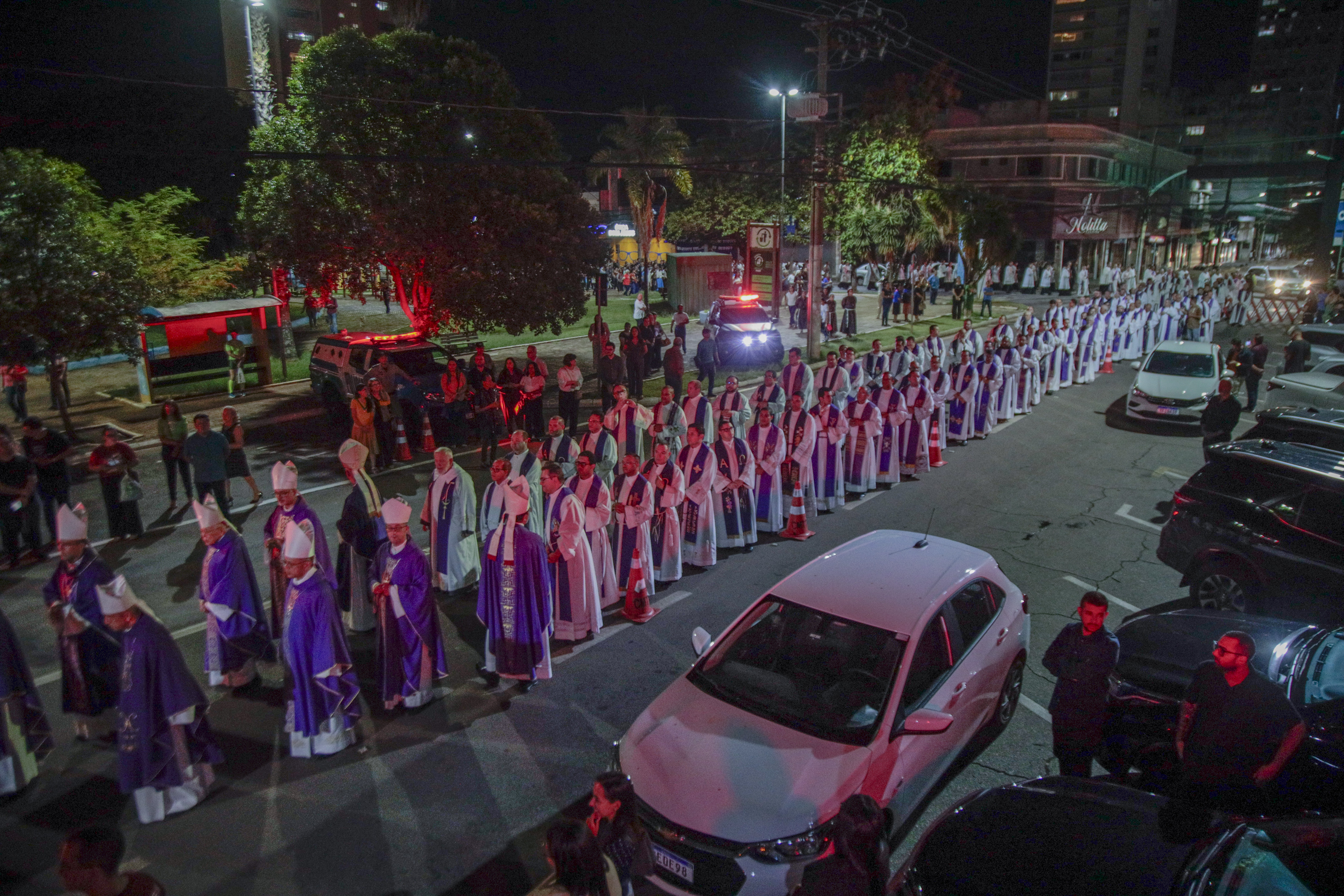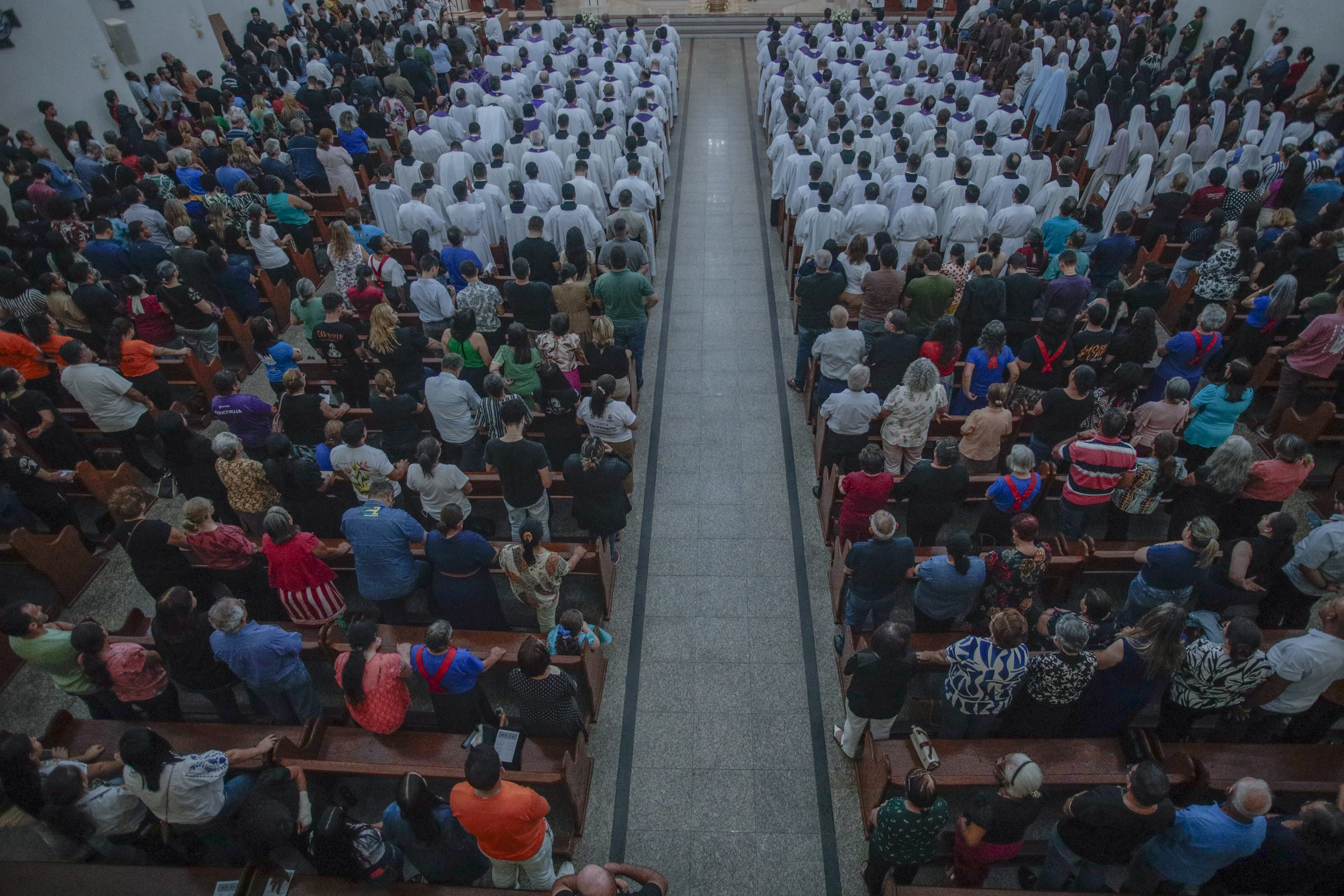 Às 3h, o Pe. Jacinto Kryszk presidiu a Santa Missa em polonês, língua materna de Dom João. O momento, marcado por forte simbolismo, recordou a terra natal do bispo e sua trajetória até o Brasil, a celebração foi transmitida ao vivo para que familiares e amigos pudessem acompanhar.