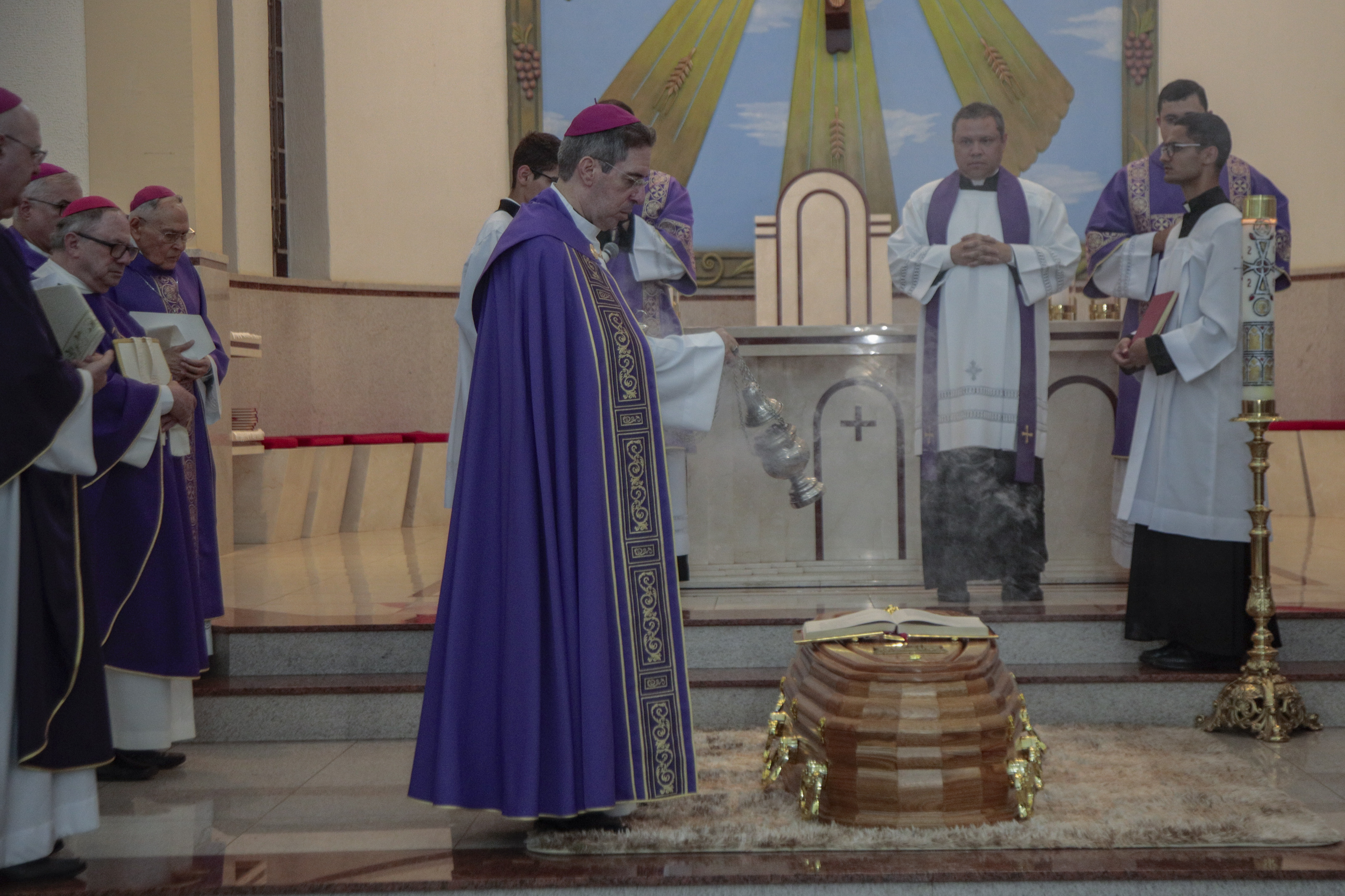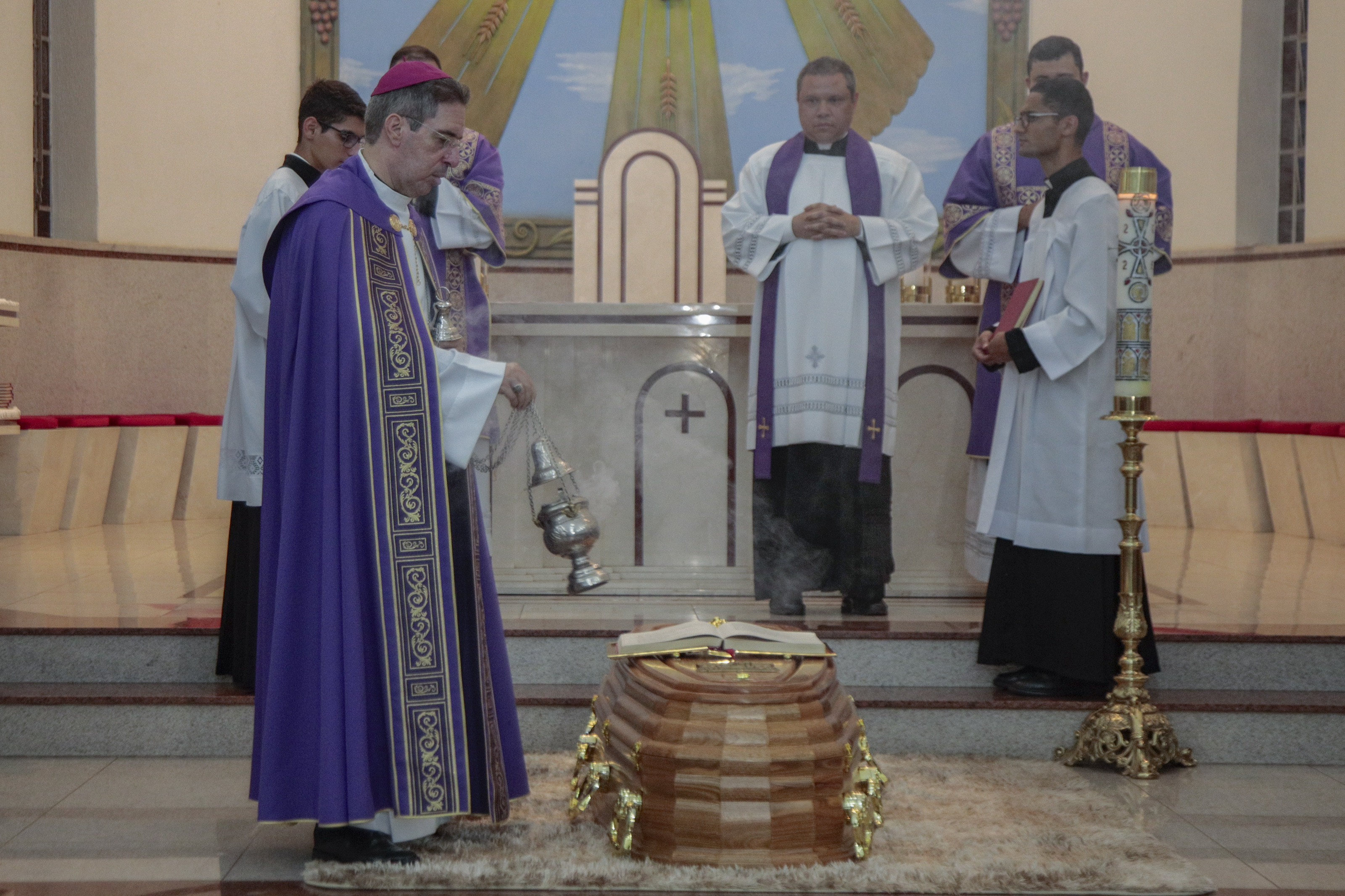 Ao entardecer, após as vésperas, a última Missa de corpo presente foi presidida às 19h por Dom Waldemar Passini, Bispo Diocesano de Anápolis. A Catedral estava repleta de fiéis, sacerdotes, religiosos e bispos do regional, unidos para se despedir do seu pastor.