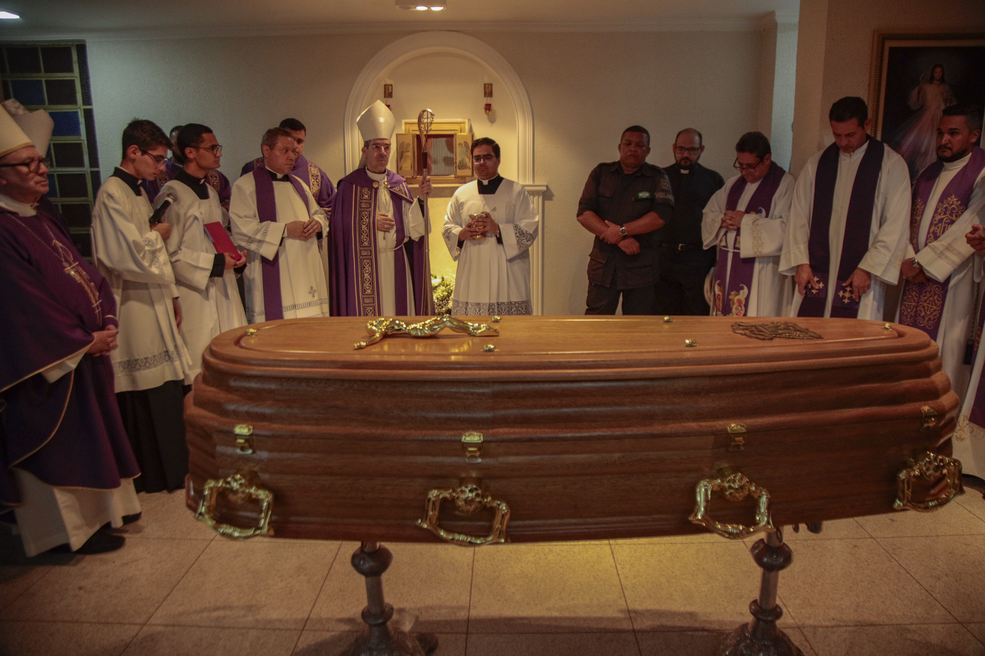 “Se o amor foi sua estrada, o céu agora é seu destino”, disse o sacerdote, conduzindo a assembleia a rezar com fé e gratidão pela vida do bispo.
