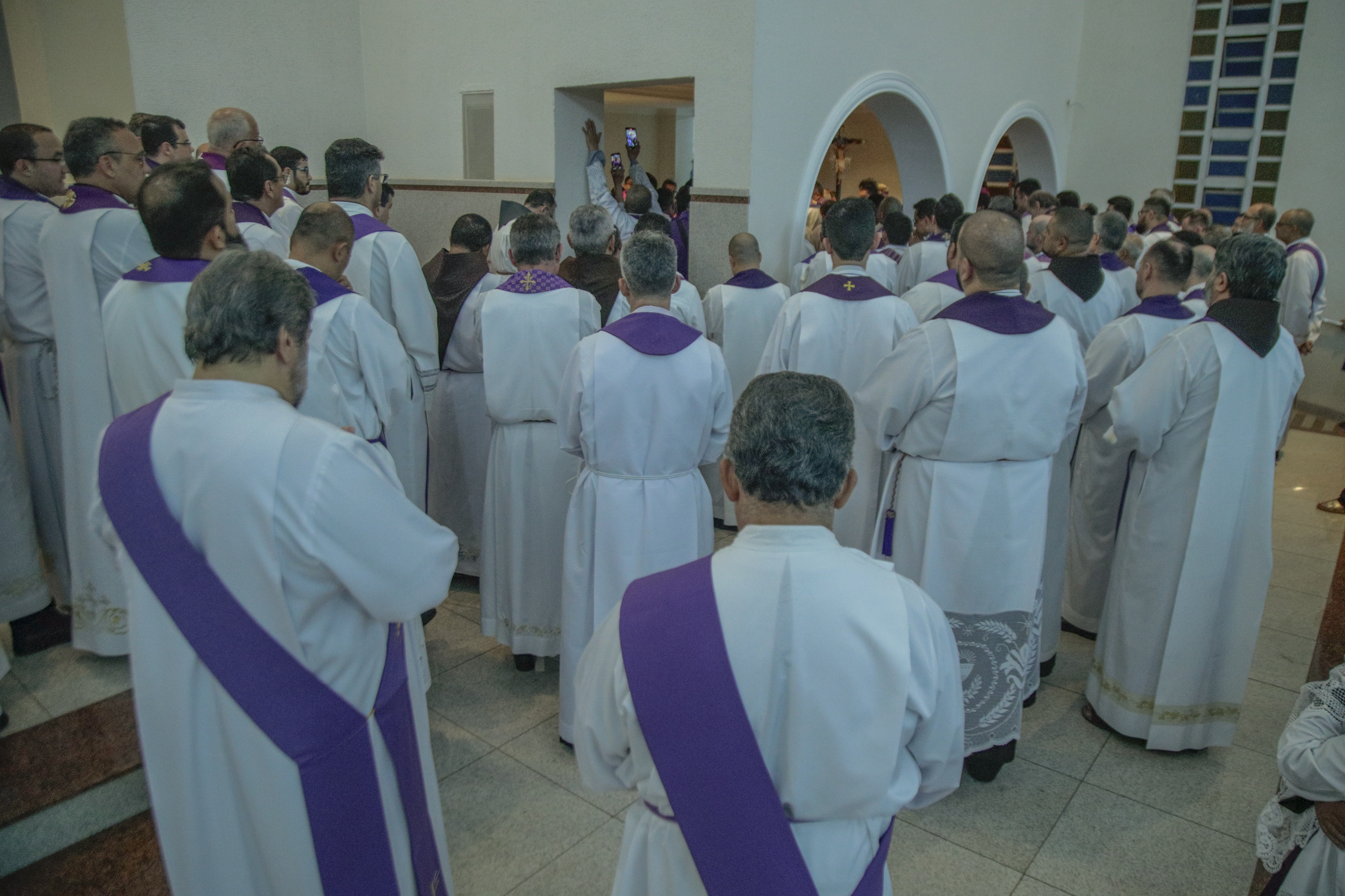 Às 14h, Frei Gilberto, OFMConv., Ministro Provincial da Província de São Maximiliano Maria Kolbe, presidiu a celebração com os religiosos e religiosas da diocese. Ele recordou o testemunho silencioso e perseverante de Dom João: “Ele não murmurava, não reclamava. Em suas dores, oferecia ao Senhor cada martírio de fé.”